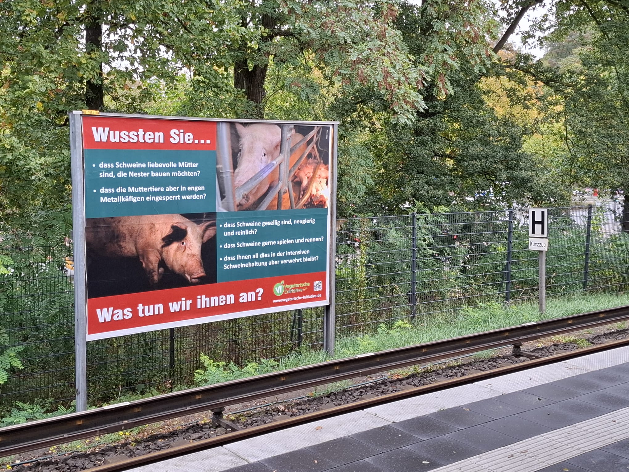 Plakate in der Größe A2 sollen in Hamburger S-Bahnen vom 1. bis 30.11.2025 auf das maßlose Leid der lebenslang eingesperrten Masthühner (und -hähne) aufmerksam machen.