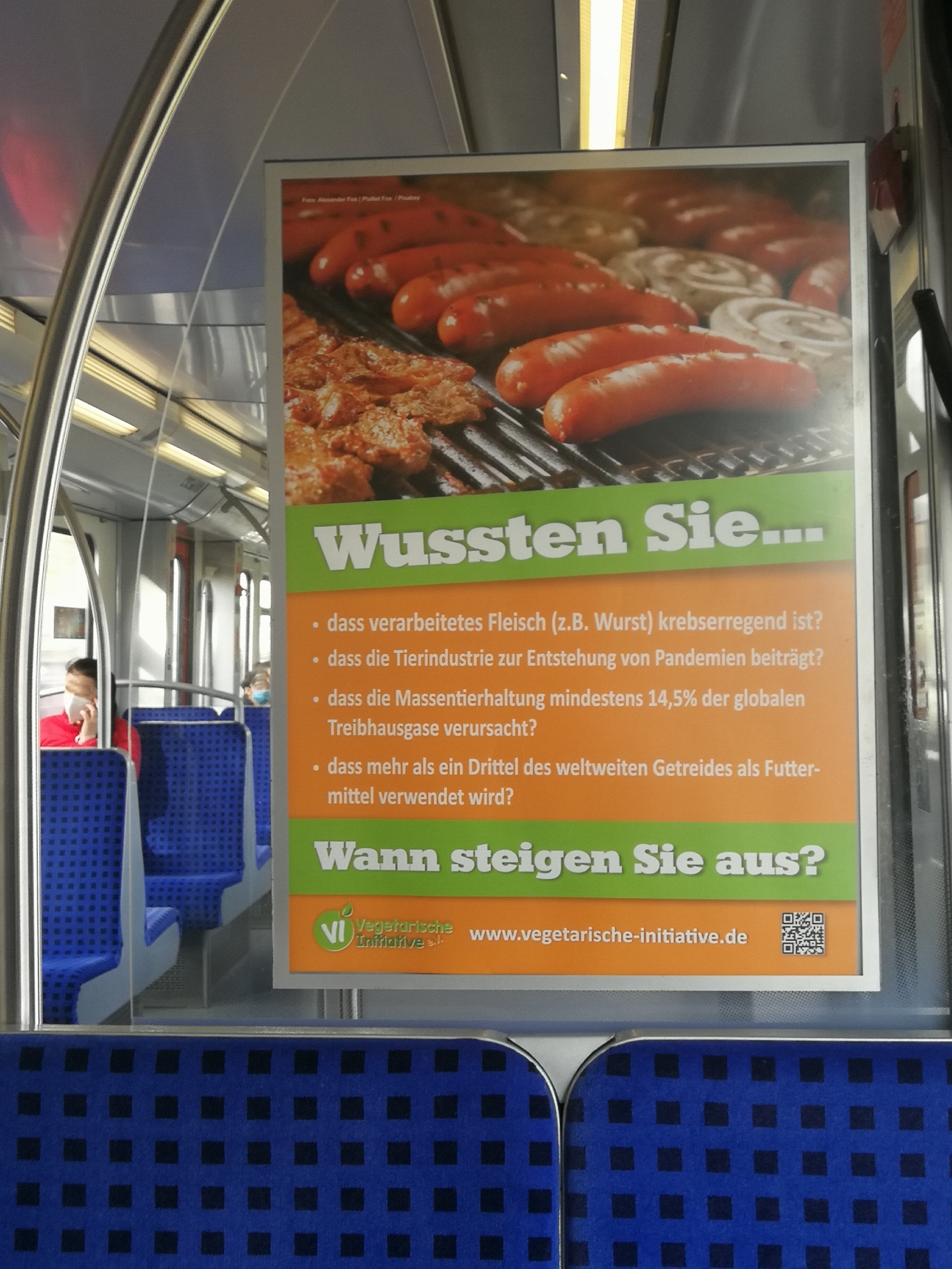 Unsere S-Bahn-Seitenscheibenplakate - Größe 50 cm x 15 cm - waren mit dem bekannten Zitat von Paul McCartney "Wenn Schlachthäuser Glaswände hätten..." einen ganzen Monat (16.9.-15.10.2020) im Raum DORTMUND - beidseitig lesbar - zu sehen!